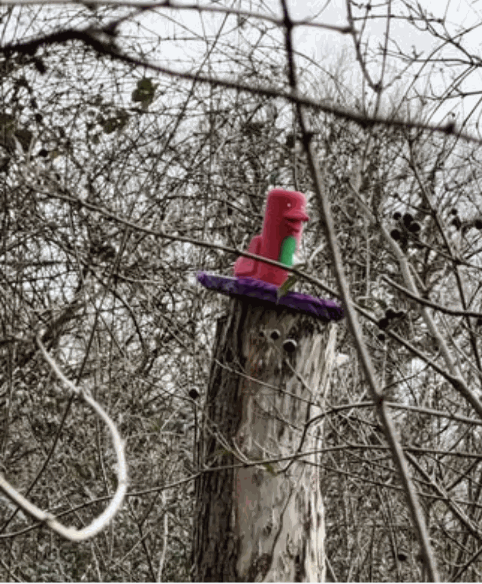 Du ved, den med de store tænder, den røde fjerdragt og de grønne brystfjer?